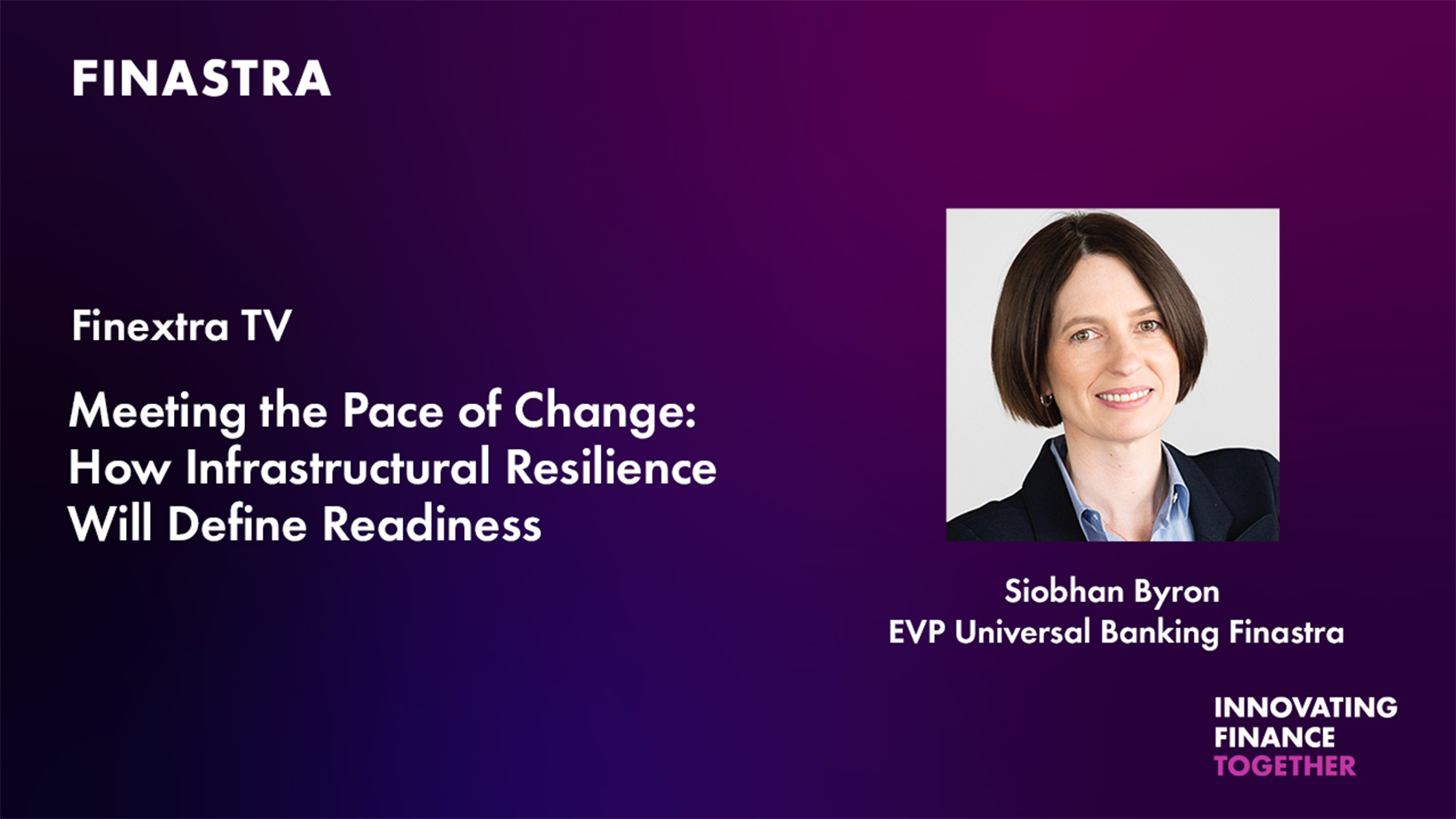 In this Finextra TV interview, Siobhan Byron, Executive Vice President of Universal Banking at Finastra, explains what is fueling this pace of change, where the industry is heading, and why resilient infrastructure is now essential for sustainable growth.